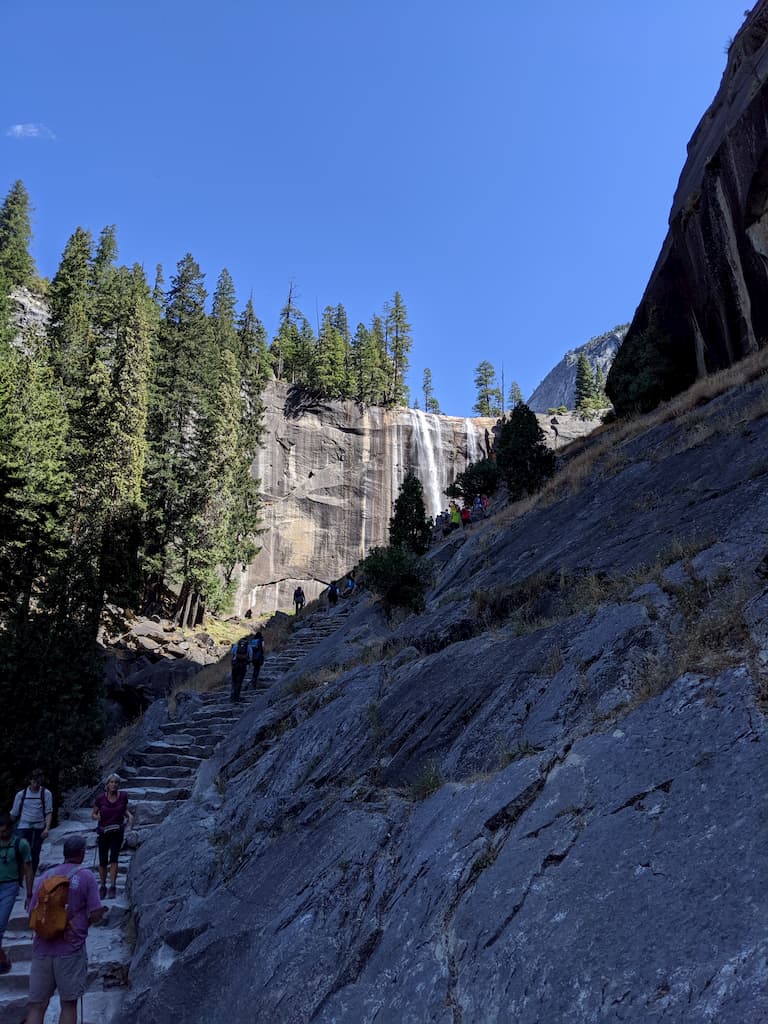 And all along the way, Vernal Fall plays with your sense of perspective as you take another shot or selfie from a newly discovered vantage point. Eventually, it fills the frame. If you persist, it makes for a downward view when you finally get to the top.