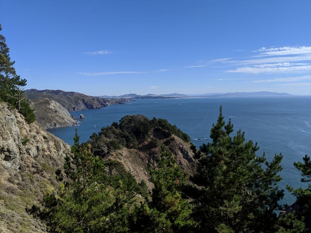Mia and I were driving south from Point Reyes and Stinson Beach, veering off to the right and up a steep hill to the promised overlook. We were rewarded with sweeping views south to San Francisco, west to the Pacific and Asia, and north to the coast we'd just driven along.