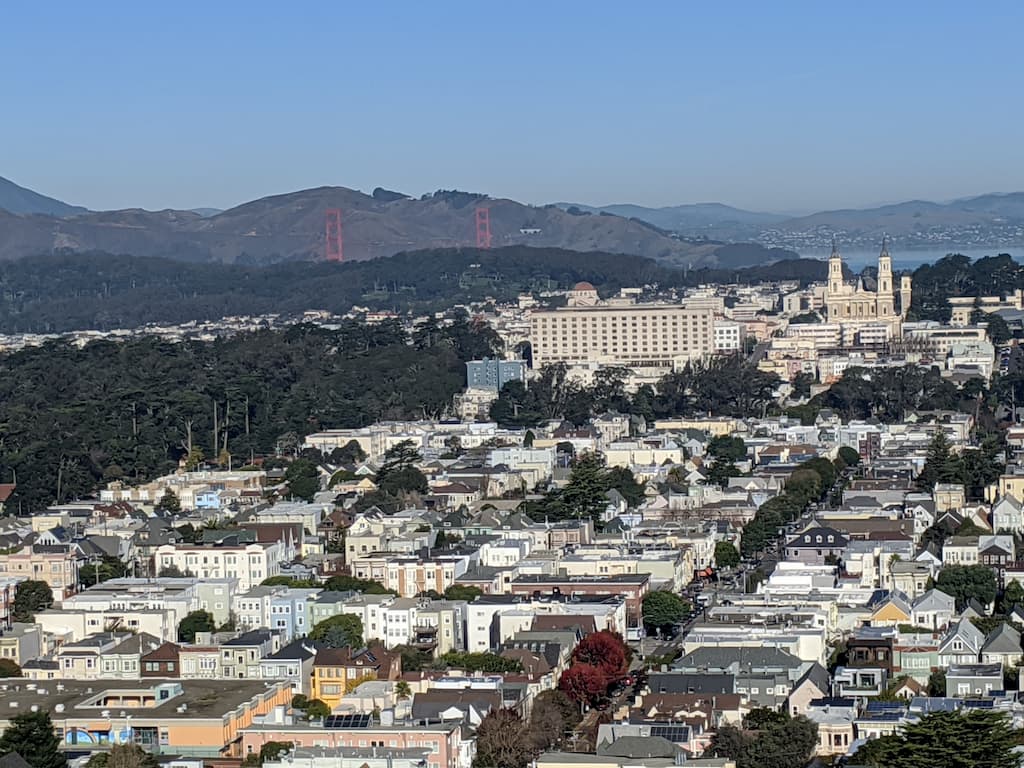 We discovered a neighborhood perch, a small park that stood out looking north, east, and west over San Francisco. Many of the homes in the area, sitting along Clarendon and clinging to the hillside, have the same view, but this was the public access for the less fortunate.