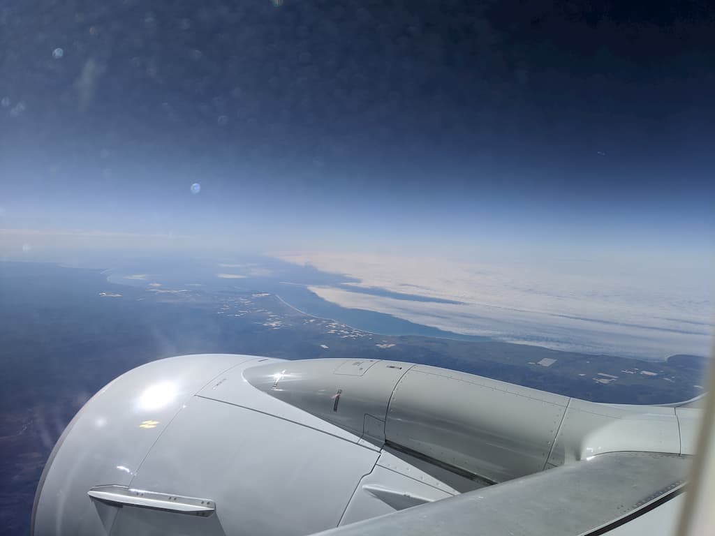 The vistas aren’t a surprise if you pay attention to basic geometry. Taking into account weather and atmospheric conditions, from a cruising altitude of 37,000 feet, you could theoretically see around 240 miles away. Looking at my pictures and a map, I could effectively see about 150-175 miles away on that clear day.